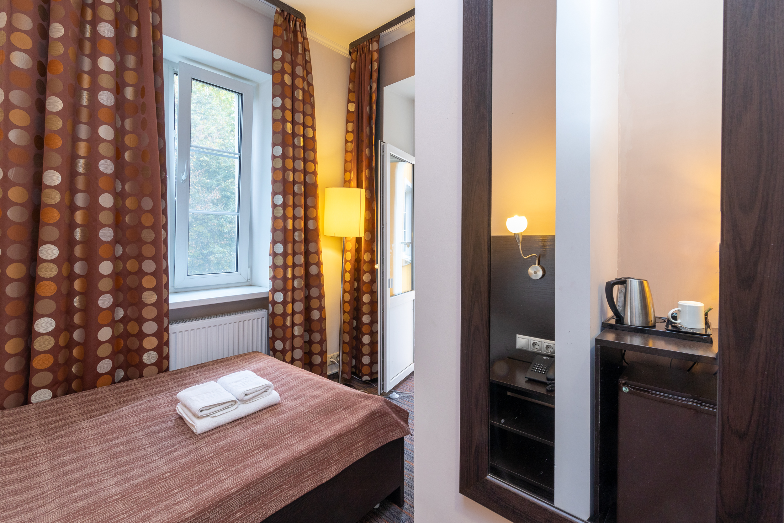 Уютный номер с одной односпальной кроватью, телевизором и вешалкой для одежды. Номер идеально подойдет для комфортного проживания одного гостя.